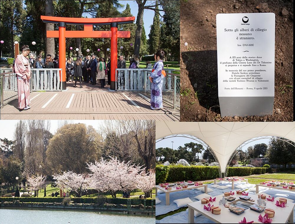 Daiichi Sankyo Italia ad aprile del 2015 ha contributo alla riqualificazione della zona centrale del Parco del Lago EUR a Roma, arricchendo con nuovi esemplari di ciliegi della varietà Yoshino la bellissima "Passeggiata del Giappone" del Parco. Per l’occasione la filiale italiana, ha realizzato l’evento “Sotto gli alberi di Ciliegio nessuno è straniero” e celebrato l’Hanami, la tradizione millenaria del paese del Sol Levante che consiste nel festeggiare e godere dello spettacolo dei ciliegi in fiore con picnic in compagnia a base di sushi e sake. Il legame tra Daiichi Sankyo e i ciliegi si strinse nel 1912, quando migliaia di ciliegi (Sakura) furono piantumati sul Tidal Basin, come dono del sindaco di Tokyo alla città di Washington, a testimonianza dell’integrazione culturale e dell’amicizia tra Stati Uniti e Giappone. A orchestrare la donazione fu lo scienziato Jokichi Takamine, scopritore dell’adrenalina e primo presidente dell’azienda farmaceutica Sankyo Co., (oggi Daiichi Sankyo). Dal 1935 l’anniversario di questo evento viene celebrato nella capitale statunitense con il Cherry Blossom Festival, che ogni anno attrae centinaia di migliaia di persone da tutto il mondo.