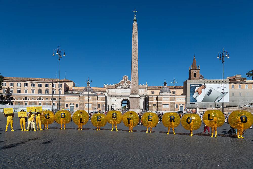 Nel cuore di Roma, undici ingombranti sfere gialle “umane” bloccano il passaggio dei pedoni che transitano tra Largo dei Lombardi, Piazza di Spagna, Via del Corso e Piazza del Popolo, esattamente come il colesterolo LDL ostruisce la circolazione del sangue delle arterie, aumentando il rischio di infarto o ictus. Con questo particolare flash mob ha avuto inizio “Liberiamo la Circolazione dal Colesterolo”, la giornata di sensibilizzazione con screening cardiologici gratuiti organizzata da Daiichi Sankyo Italia in occasione della Giornata Mondiale del Cuore.