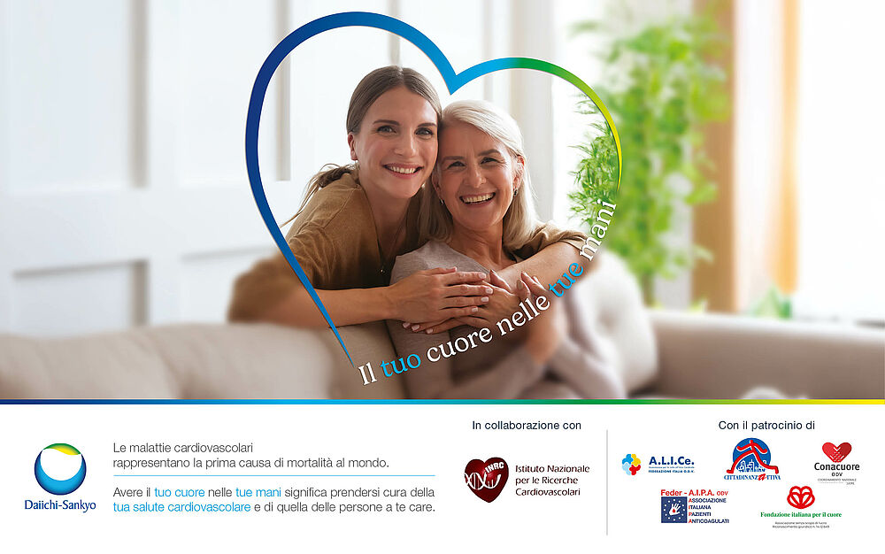 Questa campagna itinerante di prevenzione cardio-cerebrovascolare che, prenderà il via a Roma martedì 30 settembre in Piazza del Popolo (10:00–18:00), è promossa da Daiichi Sankyo in collaborazione con l’Istituto Nazionale per le Ricerche Cardiovascolari (INRC), con il patrocinio di A.L.I.Ce. Italia ODV, Cittadinanzattiva, Coordinamento Nazionale Associazioni del Cuore (Conacuore ODV), Feder-A.I.P.A. e Fondazione Italiana per il Cuore (FIPC). Dopo Roma, la campagna proseguirà con tappe a Torino e Palermo.